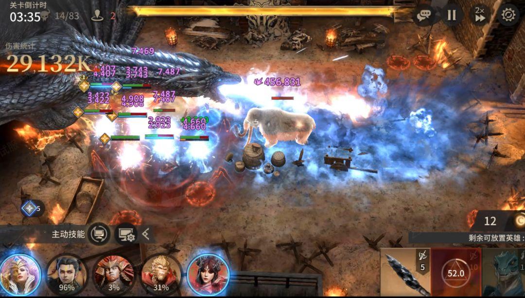 AOE输出推荐英雄:哪吒、关羽、伊米莱特;下位选择:埃斯特丽德(紫卡)、詹姆、沃尔卡、玛格达、傲慢,可选英雄很多,不做穷举(能打AOE即可);