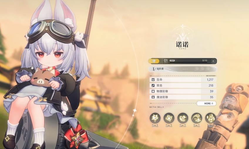 帕米族最具代表性的双子战力为诺诺与佩佩,二者构成稳定协同的战术单元。诺诺为地属性三星角色,承担队伍核心物理输出职能:其普攻具备5段连续打击效果,全程附带地属性物理伤害;长按普攻可进入蓄力重击模式,依据蓄力时长释放差异化爆发力;主动技能可在移动中施放,兼顾机动性与压制力;终极技能则可为目标施加“地蚀印记”,使后续所有伤害对该目标产生额外增幅。