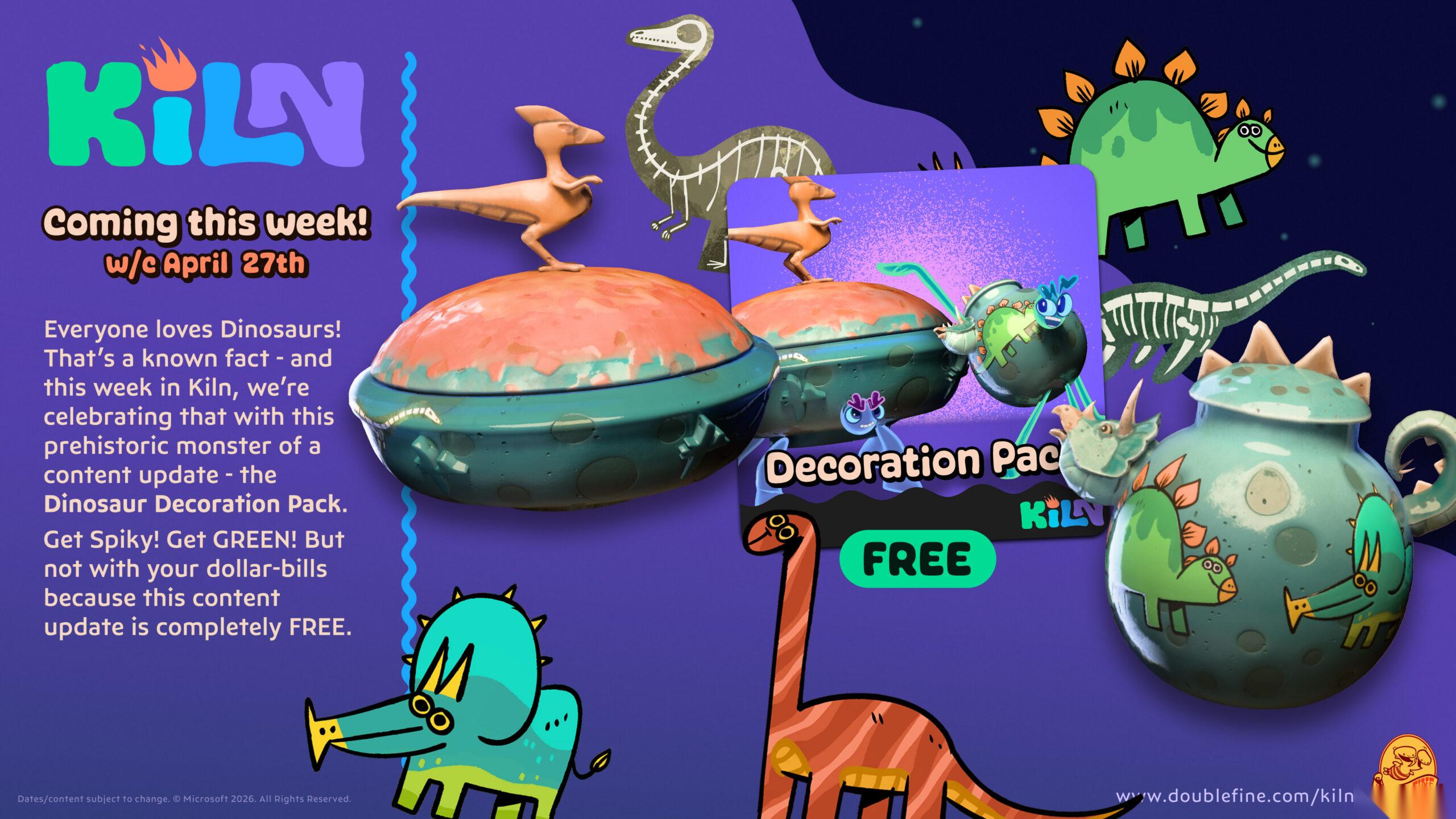 在游戏发布后的第一个月,我们每周都会为你准备一些更新!发布后的第一周,我们将推出有趣的恐龙装饰包,让你制作出充满古老气息的陶器。