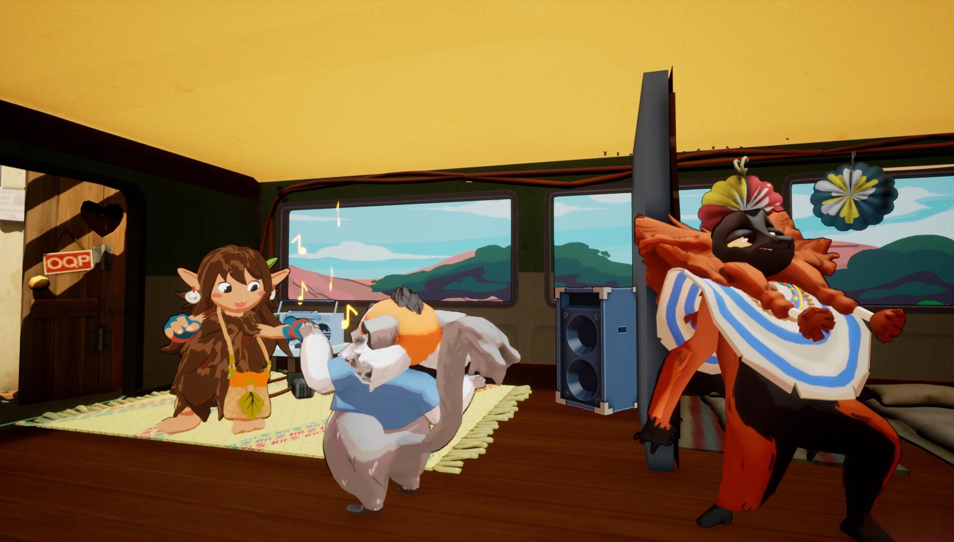 在动作关卡之间,出租车(taxi-brousse)将作为你的移动基地。你可以在这里穿梭于目的地之间,保持同伴的愉悦度、烹饪美食、打印海报并为下一站做准备。这是一种轻度的管理层设计,旨在让玩家在下一关之前享受一段轻松时光。