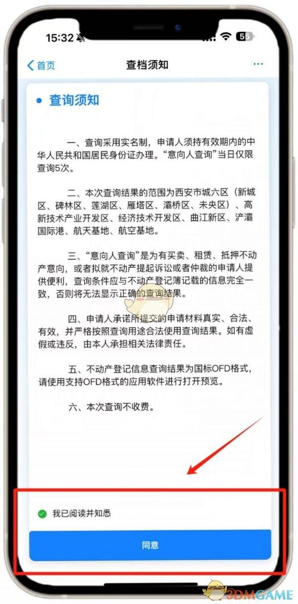 点击【住房查询】,勾选“我已阅读并知晓”并点击【同意】。