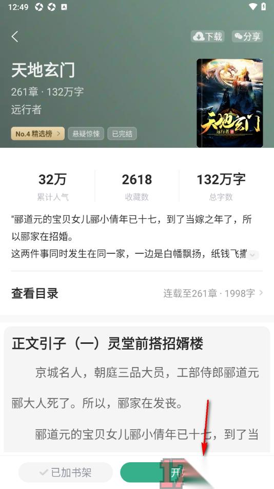 2.在打开的书籍详情页面中,会查看到右下角显示的【开始阅读】功能,将该功能点击打开即可进入阅读页面。
