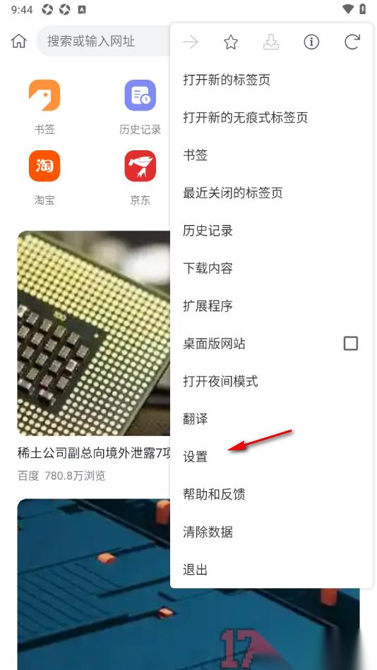 2.这时候页面上即可显示出相关的功能选项,在这里找到其中的【设置】选项点击打开即可进入设置。