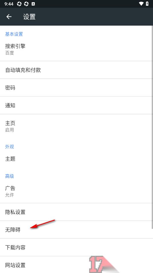 3.当我们来到当前打开的页面上之后,会查看到相关的设置功能,需要将【无障碍】选项点击打开即可进入操作。