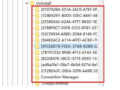 3、"Uninstall"文件夹下方的都是软件卸载后的残留,如图所示。