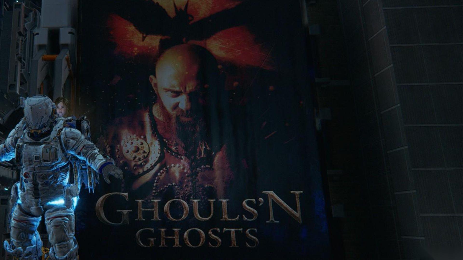 接下来是一个最出人意料的致敬,可以在商业区发现。那里有一张巨大的电影海报,上面写着“Ghouls 'n Ghosts”,这直接致敬了 Capcom 的同名游戏,也就是 Ghosts 'n Goblins 的续作。