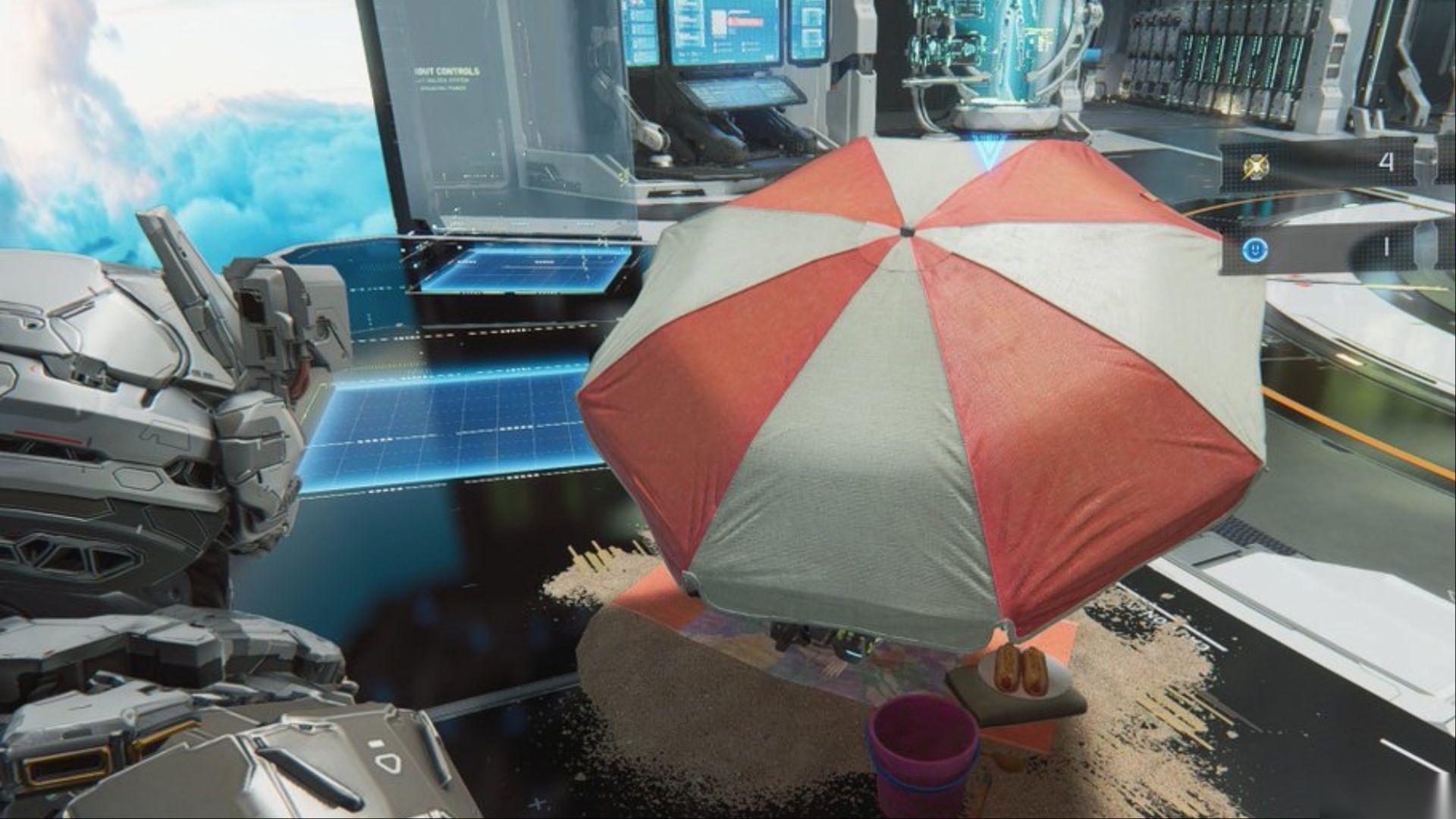 没错,这把遮阳伞上印有 生化危机4:重制版 中 Umbrella Corporation 标志性的红白图案。这是对最优秀生存恐怖游戏之一的微妙但极其出色的致敬。当然,在一个经过消毒的研究设施中看到这个标志可能会让你冒冷汗,但这依然很酷!