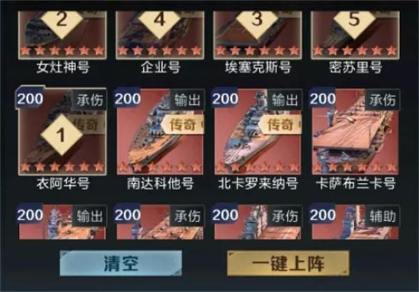 衣阿华号:25% 全队抗暴 + 20% 航母最终免伤,为企业号提供开局全程的生存保障;