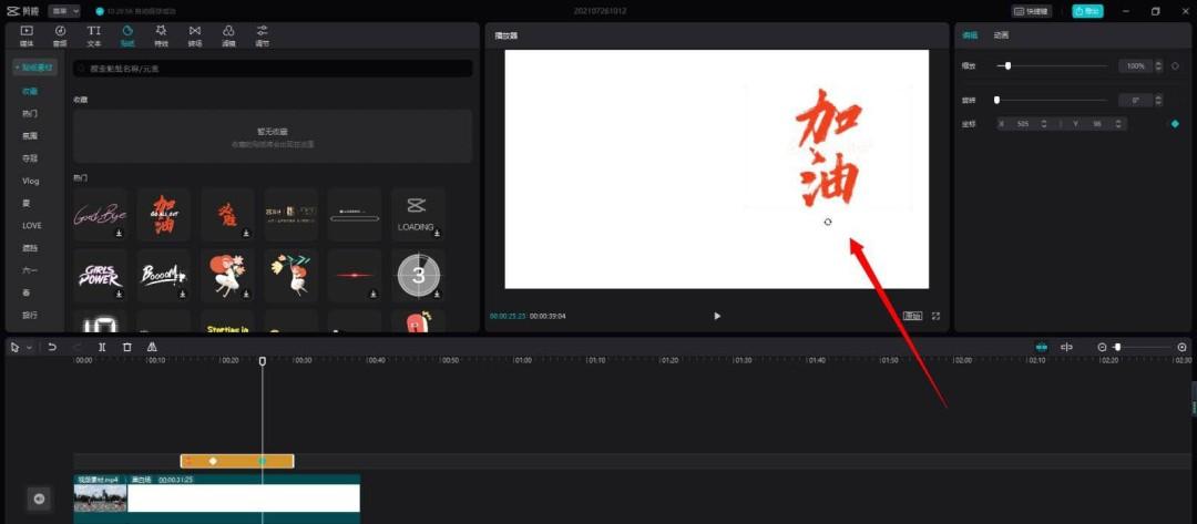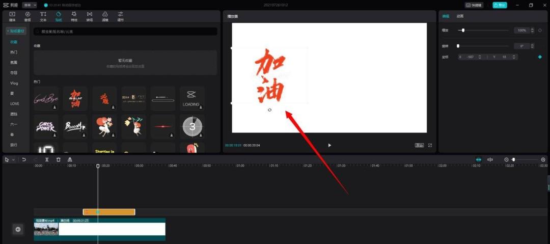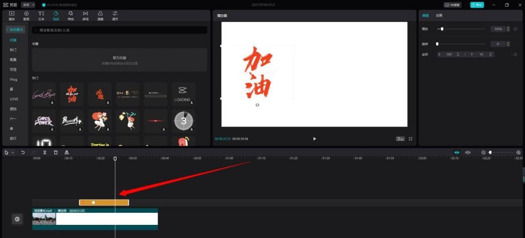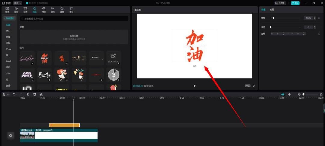 1.点击贴纸,在贴纸分类下选择喜欢的贴纸,添加至主轨道