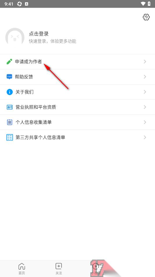 2.当我们来到当前打开的页面上之后,在页面上选择显示的【申请成为作者】选项,将其点击打开即可进入。