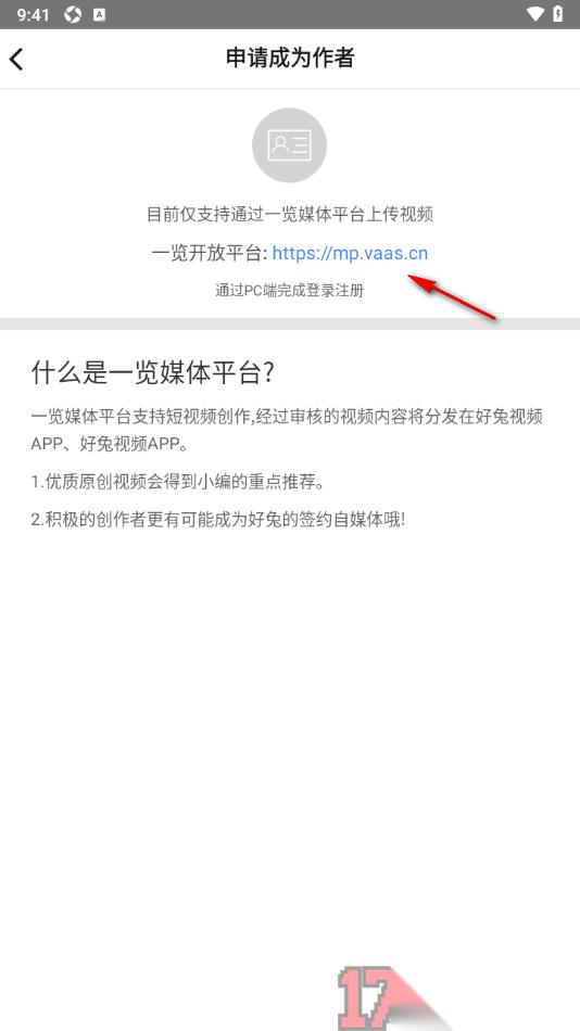 好兔视频APP成为用户们日常会使用到的视频软件,很多用户对于该应用非常的喜欢,大家在操作该应用的过程中,可以观看一些关于音乐、游戏以及影视等多方面的内容,并且还可以根据自己的需求进行作者申请认证,之后可以将自己的相关作品发布到该应用中,吸引其他用户的关注和喜欢,同时还会吸引他人的点赞、评论和转发等。而想要申请成为作者,需要在个人信息页面中找到该功能点击打开即可按照所提供的操作步骤来设置即可,该应用不能直接申请为作者,需要进入到一览媒体平台进行申请。