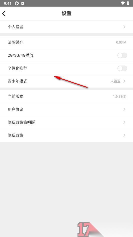 5.在当前打开的页面上用户可以根据自己的需求进行个性化推荐、青少年模式的设置以及移动网络的设置等,如图所示。