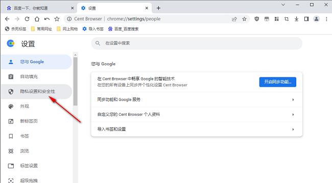3、在打开的窗口界面中,点击左侧栏中的"隐私设置和安全性"选项。