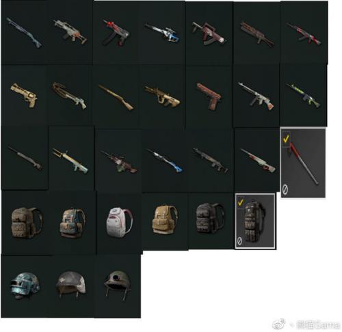 共30款枪械装备,其中21款枪械皮肤,6款新式背包,3款新头盔。