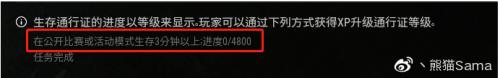 通行证的经验获取大致分为:1、每日生存奖励;2、每日任务奖励;3、每周任务奖励;4、豪华任务;5、赛季任务;6、挑战任务;7、通行证升级奖励。