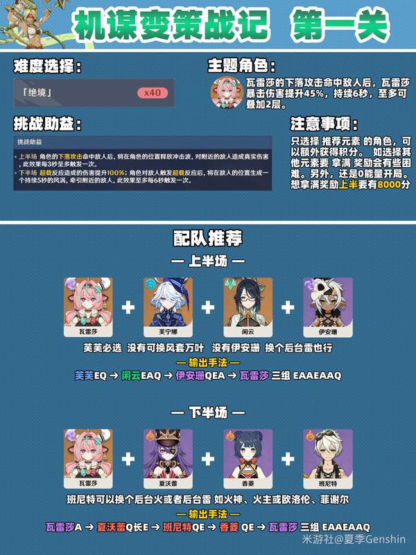 原神自半空轰落的雷霆是机谋变策战记的第一关,本关主题角色为瓦雷莎,需要通过下落攻击或超载来获得更多分数,本期攻略带来原神机谋变策战记第一关打法攻略,一起来看具体配队思路吧!