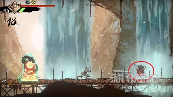 石碑往左走,来到一个上下比较宽阔的区域激活一波刷怪,将怪物全部击败可获得一个宝箱,开启获得【忍法·风刃】。
