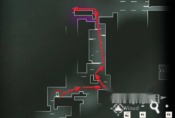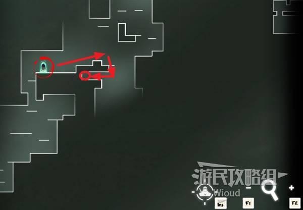 从精英部队的位置沿着下图路线往右走到头再逐级往上走到顶,顶部左侧走到边缘。