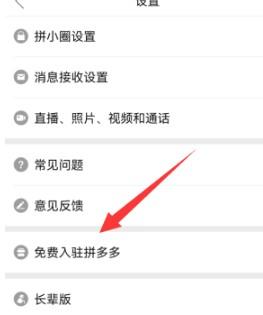 2、然后往下滚动设置找到并选择“免费入驻拼多多”