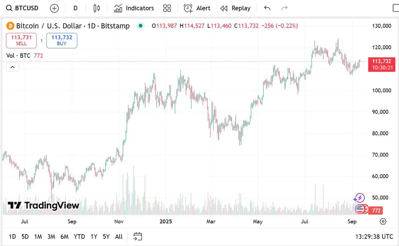 比特币交易价格为 113,638.71 美元,当日上涨 0.04%。其巨大的市值