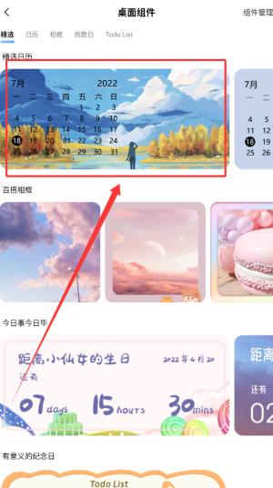 2、打开应用后进入“组件”或“工具”页面,浏览各种风格的小组件,如天气、时钟、相册等。