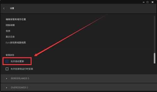 2、然后在打开的窗口界面中,找到"管理游戏"一栏中的"允许自动更新",最后将其小方框勾选上就可以了。