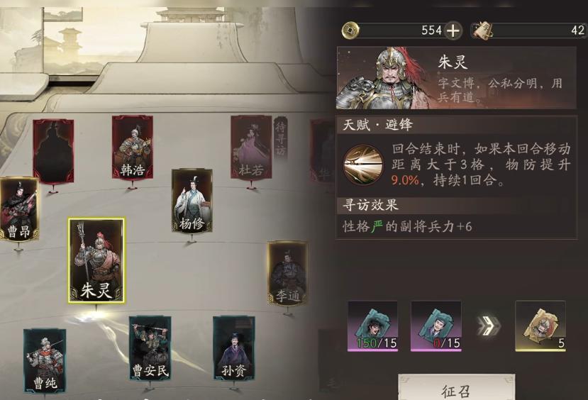 杜若在属性上属于“巧”,游戏在战斗机制上有属性相克机制,巧能克制勇,同时受制于严。在对战开始前能了解多方的属性,利用属性克制也能帮助玩家更好的应战。杜若的天赋是“温雅”,每提升一次能增加恢复效果。在韬略上可以选择增加攻击属性或者是属性克制效果。