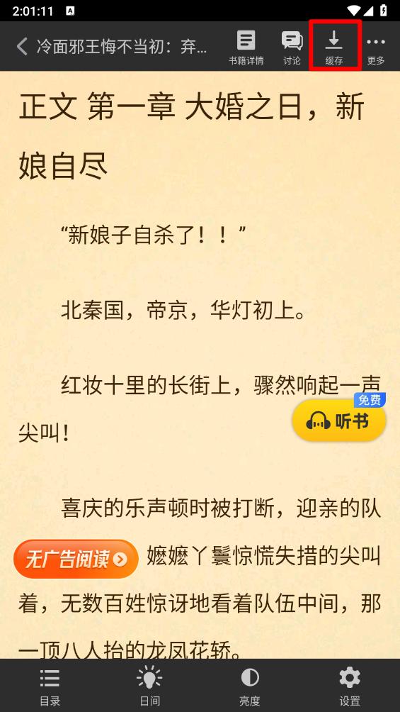 2、用户还可以进入阅读界面点击右上方"缓存"。