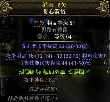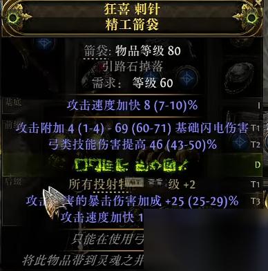 非暴箭袋:前缀:1、必须带有物理or闪电点伤T1,2、可选T2以上点伤or弓技能伤害or投射物速度。后缀:1、攻击速度2、投射物等级,第三条无所谓