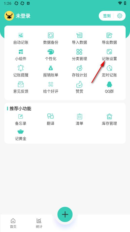 2.来到当前打开的功能页面上,直接将【记账设置】功能点击打开。