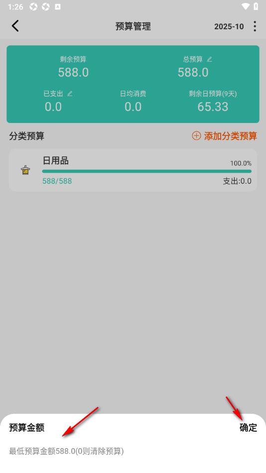 5.在页面下方的位置输入自己想要设置的总预算金额,再点击确定按钮即可保存。