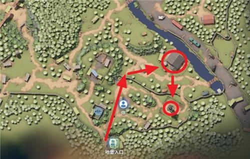 从地堡出来往地图右边走,右侧红圈所示的房屋和泥巴对话可接取健身系列任务,前三个任务需要【鸭蛋】、【苏打饼干】、【红条香烟】。