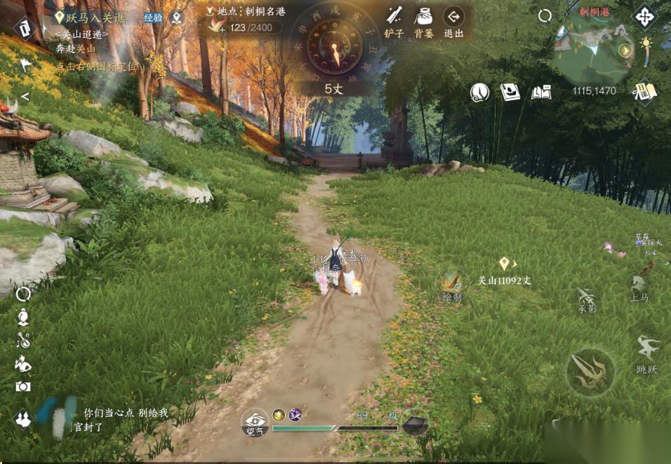 上方中间的指南针会显示处博古点距离自身的距离与方位,需要注意该范围只会显示五十丈之内的,超过了这个距离的点位会显示距离太远。此时需要点击下方的望气,使用望气可以看到一条黄色漂浮的指引线,跟随指引线走进入到博古点范围之内指南针会发出距离和方位的提示。当指南针显示出距离和方位之后,可以把自身视角挪至小地图北边,再来看指南针的指示,比如指南针指向南边,那么朝着小地图的南边走,如果一开始把视角调成北方向,就直接朝着下边走就好,会方便一些。当一步步减少距离,接近找到博古点后,点击技能左上角出现的博古铲按钮进行博古。
