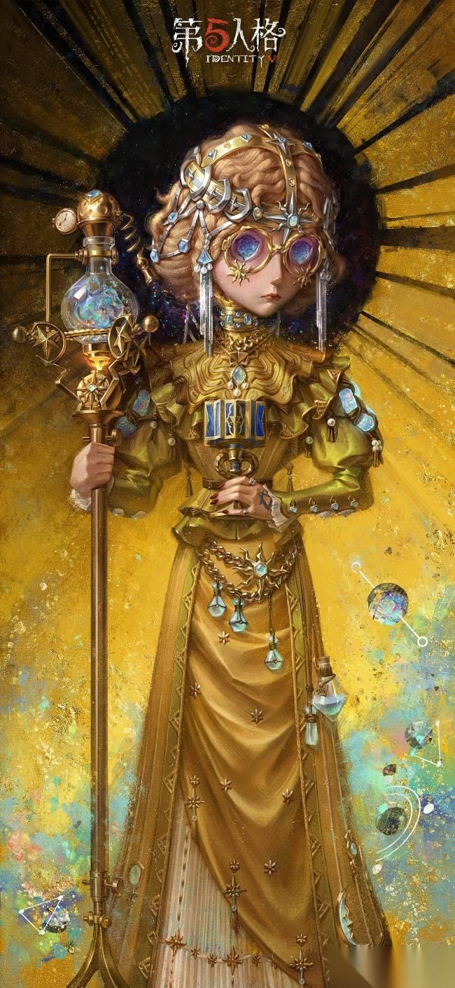 【稀世时装】盲女-玛利亚公理身穿华丽的金色长裙,华贵的裙子上缀着彩色矿石,为她增添了几分神秘。